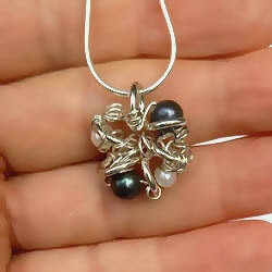 Deze zilveren hanger past bij de oorstekers Belleza del arte. De hanger en oorstekers ontwierpen wij vele jaren geleden en de uitvoering is nu net iets anders als de zilveren hanger Belleza del arte. Er zijn zoetwaterparels in de hanger verwerkt (zwart en wit). Ontwerp en uitvoering: goudsmidsatelier Flamenco.
