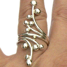 Unieke lange zilveren ring met massieve halve bolletjes ontworpen en uitgevoerd in goudsmidsatelier Flamenco in maart 2023.
