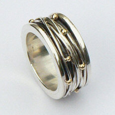 Metaal: 1e gehalte zilver en 14 krt. goud.
